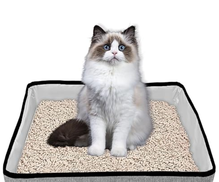 While in the hotel or a new place, the enclosed, high-walled foldable box provides a temporary, secure, cave-like space that helps anxious felines feel safe while doing their business